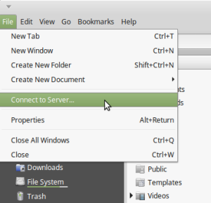Dans Nemo aller dans le menu File et sélectionner Connect to server…