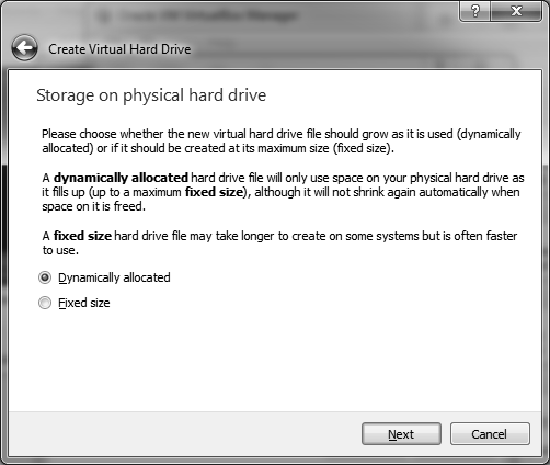 On choisit l'allocation dynamique qui permet d'augmenter facilement la taille du disque au détriment de ses performances :
