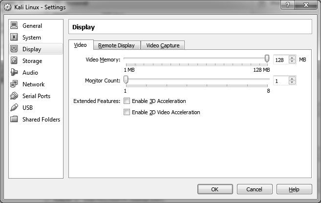 On fixe la taille dédiée à l'affichage écran (au max = 128 Mo) :
