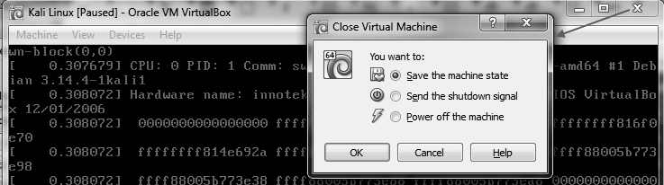 On a tout intérêt à enregistrer l'état de la VM quand elle est démarrée (inutile d'arrêter l'OS).
